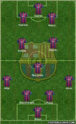 Inicio de Liga con muchas lesiones para Luis Enrique y esperando la ansiada llegada de Aleix Vidal y Arda Turan. Bravo es el portero titular de liga. En defensa si todos están bien Alves, Piqué, Mascherano y Alba titulares. En el centro del campo Rakitic, Busquets e Iniesta aunque atención a Sergi Roberto que está realizando una gran campaña. Arriba la MSN.